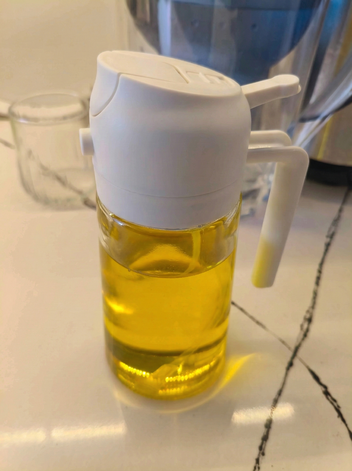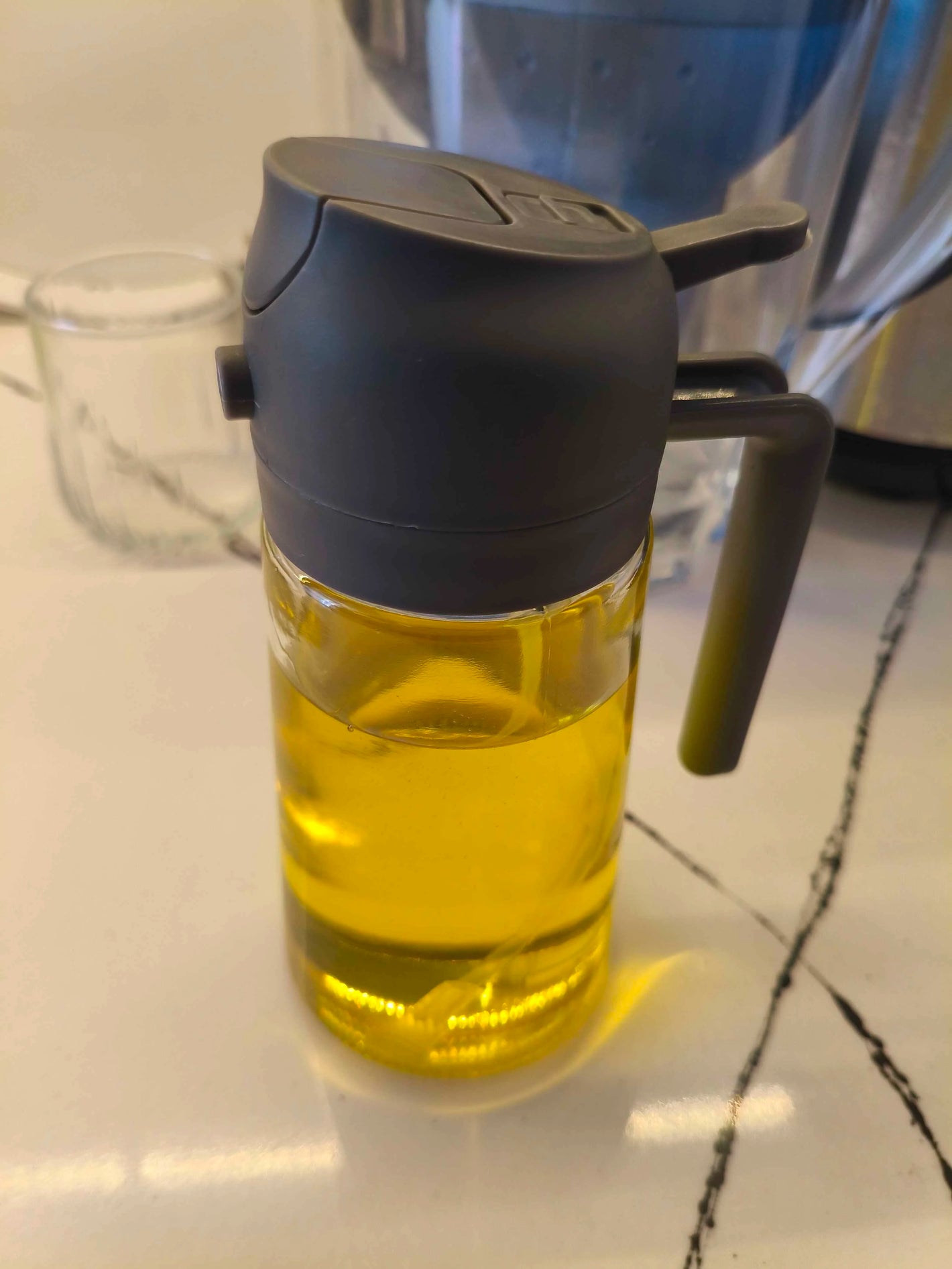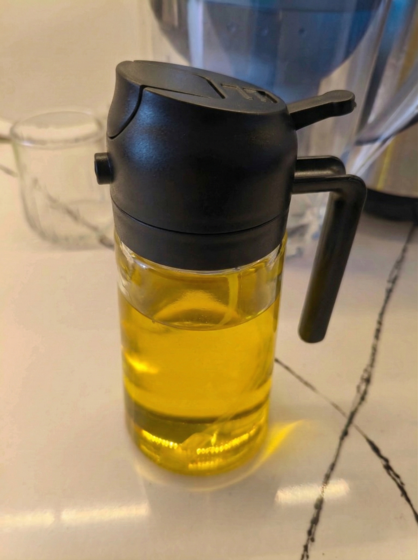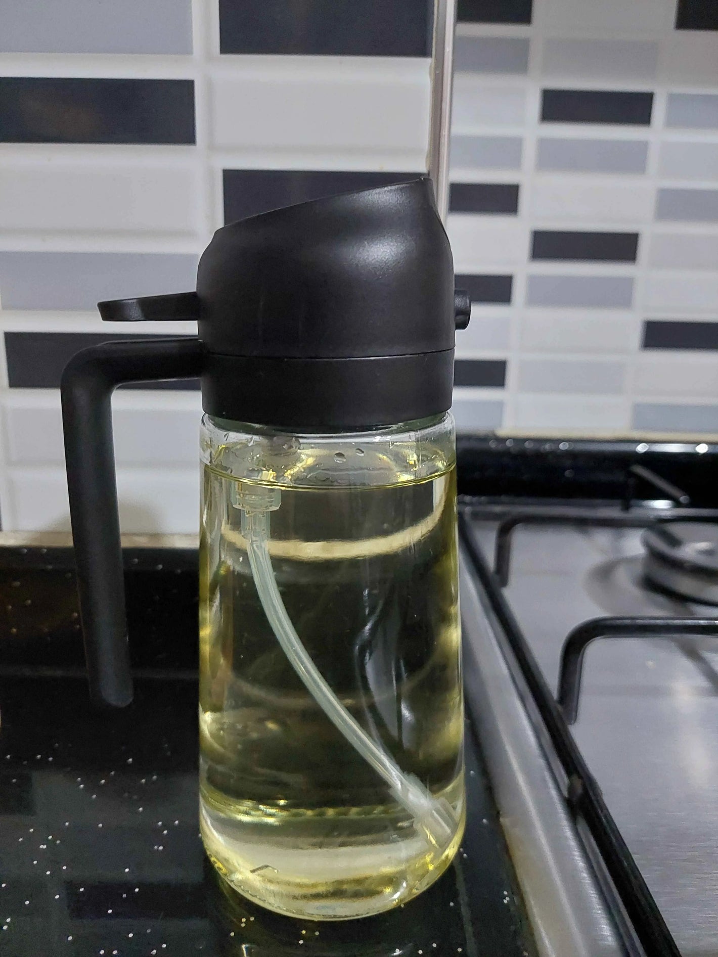 Özel çift fonksiyonlu cam şişe ile yağı kontrol altına alın. Dökme ve püskürtme özellikleri sayesinde ihtiyacınız kadar kullanın, fazlasını tüketmeyin.