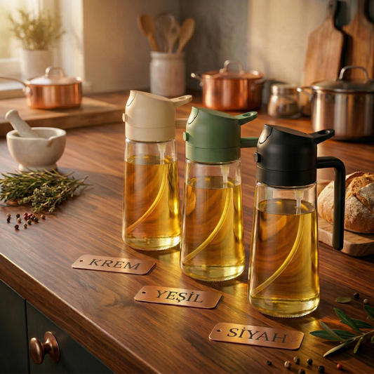 Büyük Boy (600 mL) Dökme ve Püskürtme Özellikli Akıtmaz Cam Yağdanlık